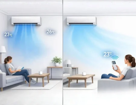 Follow Me özelliği, sıcaklığı klimanın bulunduğu noktadan değil, uzaktan kumandanın bulunduğu yerden ölçer. Böylece klima, bulunduğunuz alanı esas alarak çalışır ve odanın tamamında daha dengeli, homojen bir konfor sağlar.