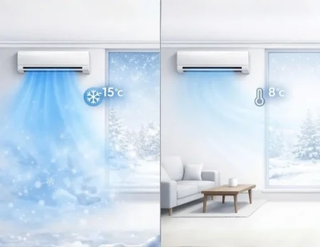 –15°C’ye kadar düşük dış ortam sıcaklıklarında bile soğutma yapabilen gelişmiş sistem yapısı sayesinde klima, zorlu hava koşullarında dahi güvenle çalışır. Teknik alanlar ve özel kullanım senaryoları için ideal performans sunar.