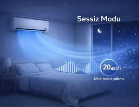 Silence Mode aktif edildiğinde iç ünite fanı süper sessiz çalışma moduna geçer ve ses seviyesi 20 dB(A)’ya kadar düşer. Düşük frekanslı çalışma sayesinde hem sessiz bir ortam sağlar hem de enerji tasarrufuna katkıda bulunur.